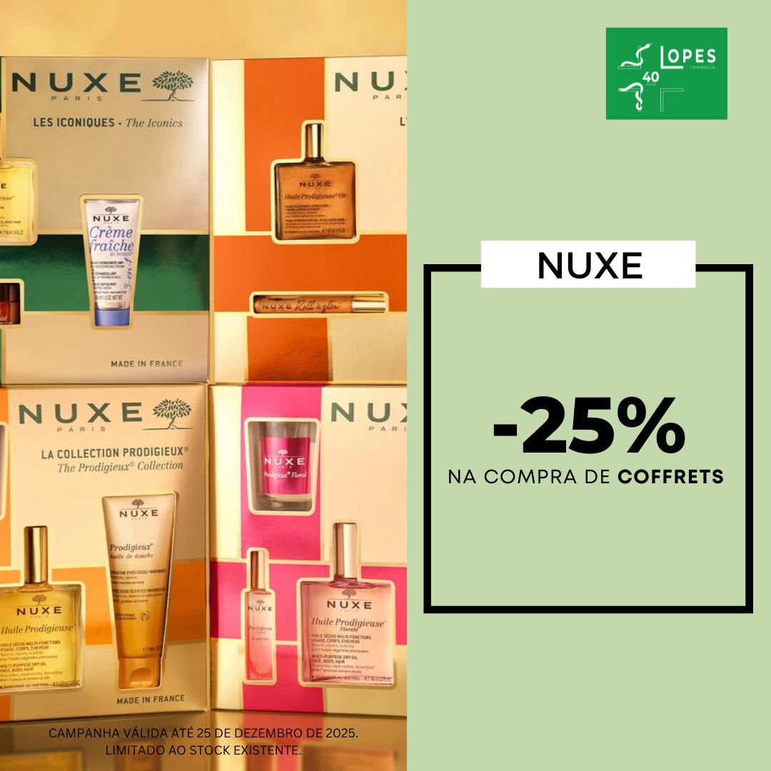 Até 25 de dezembro, aproveite -25% de desconto direto na compra de coffrets da marca NUXE.